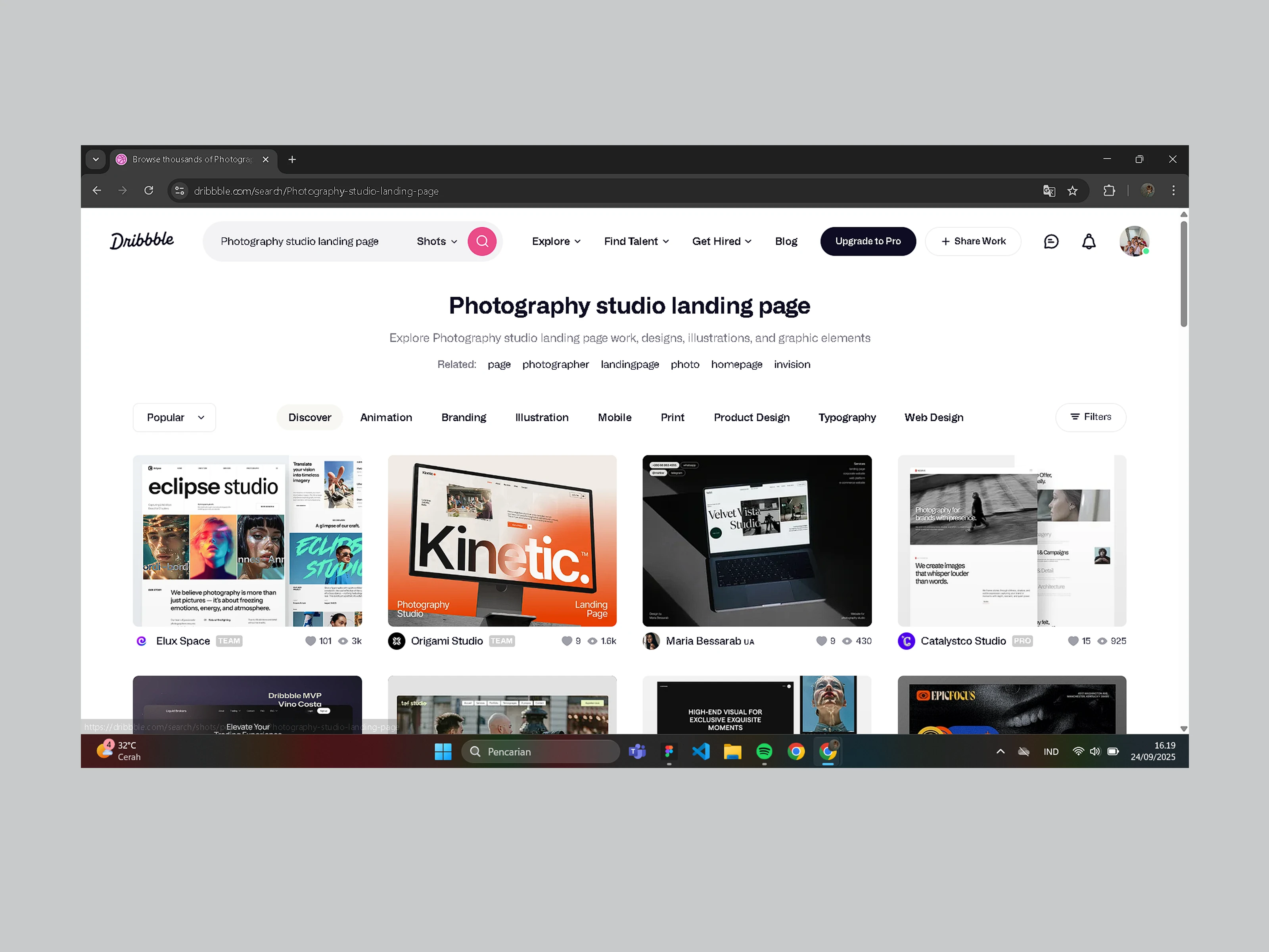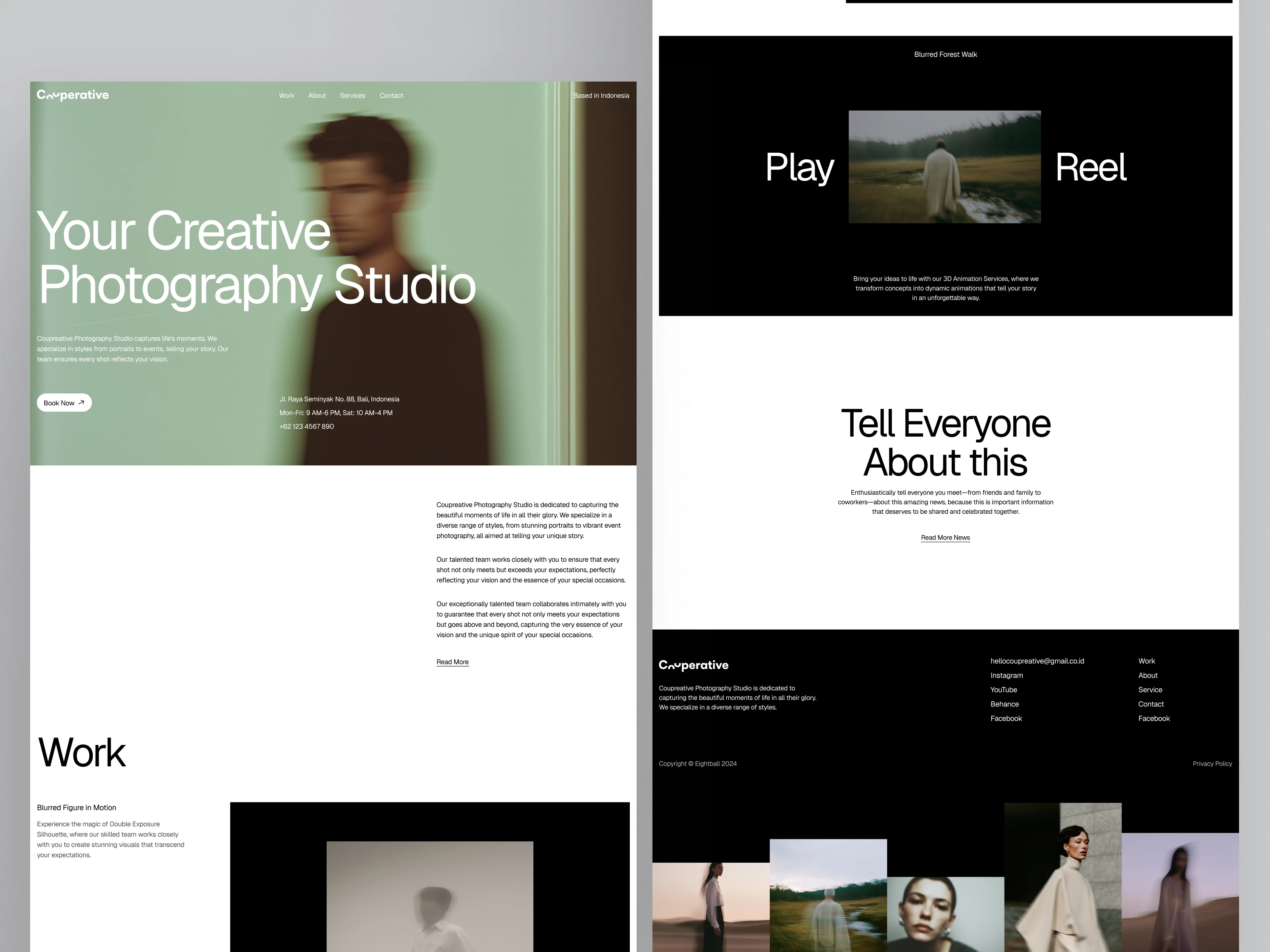 Hello guys, this is an exploratory design I created with the theme of a photography studio. As someone who works in the field of design, I am certainly familiar with showcase design, which involves sharing the designs I have created with the community or fellow UI/UX designers.