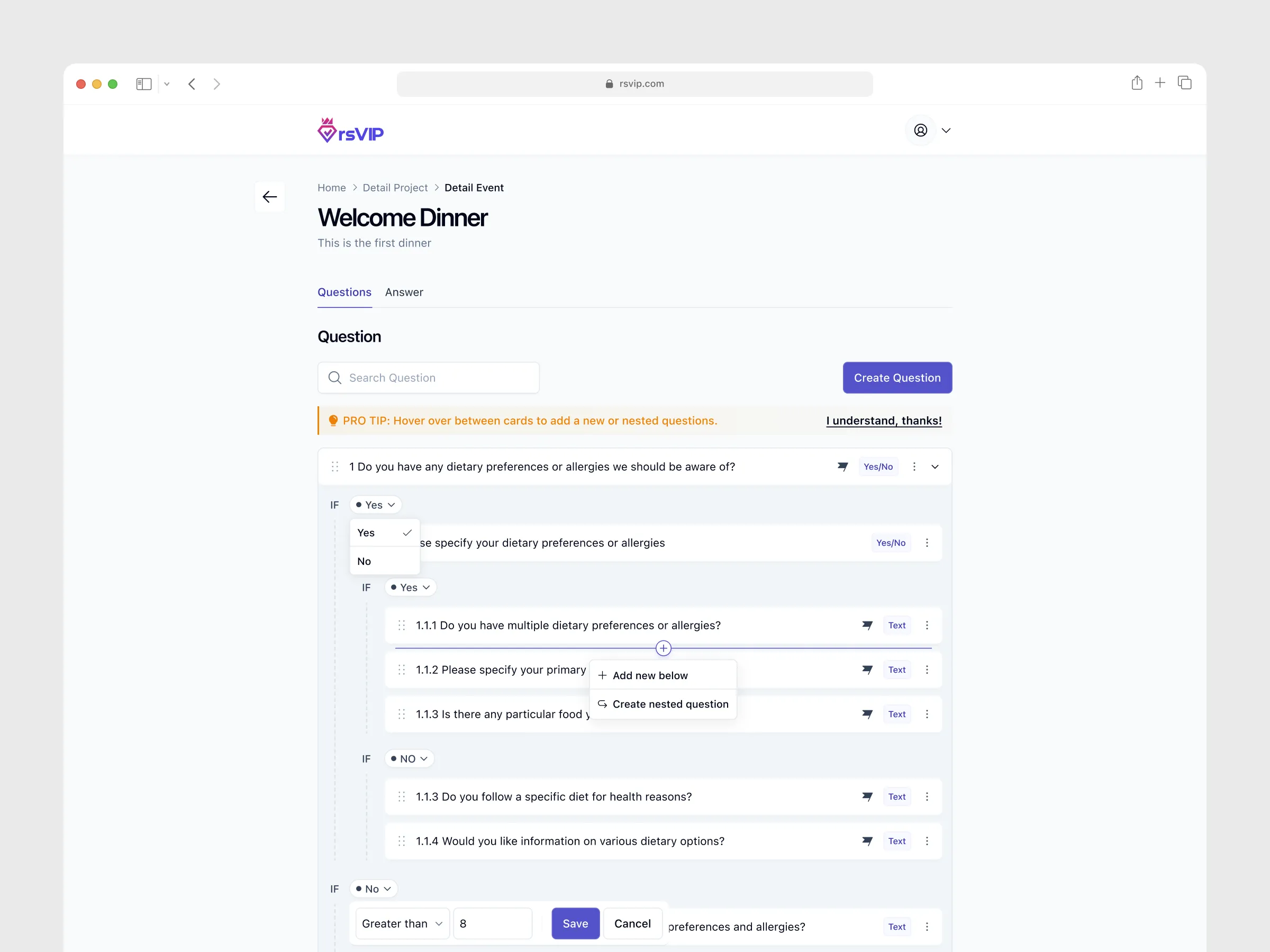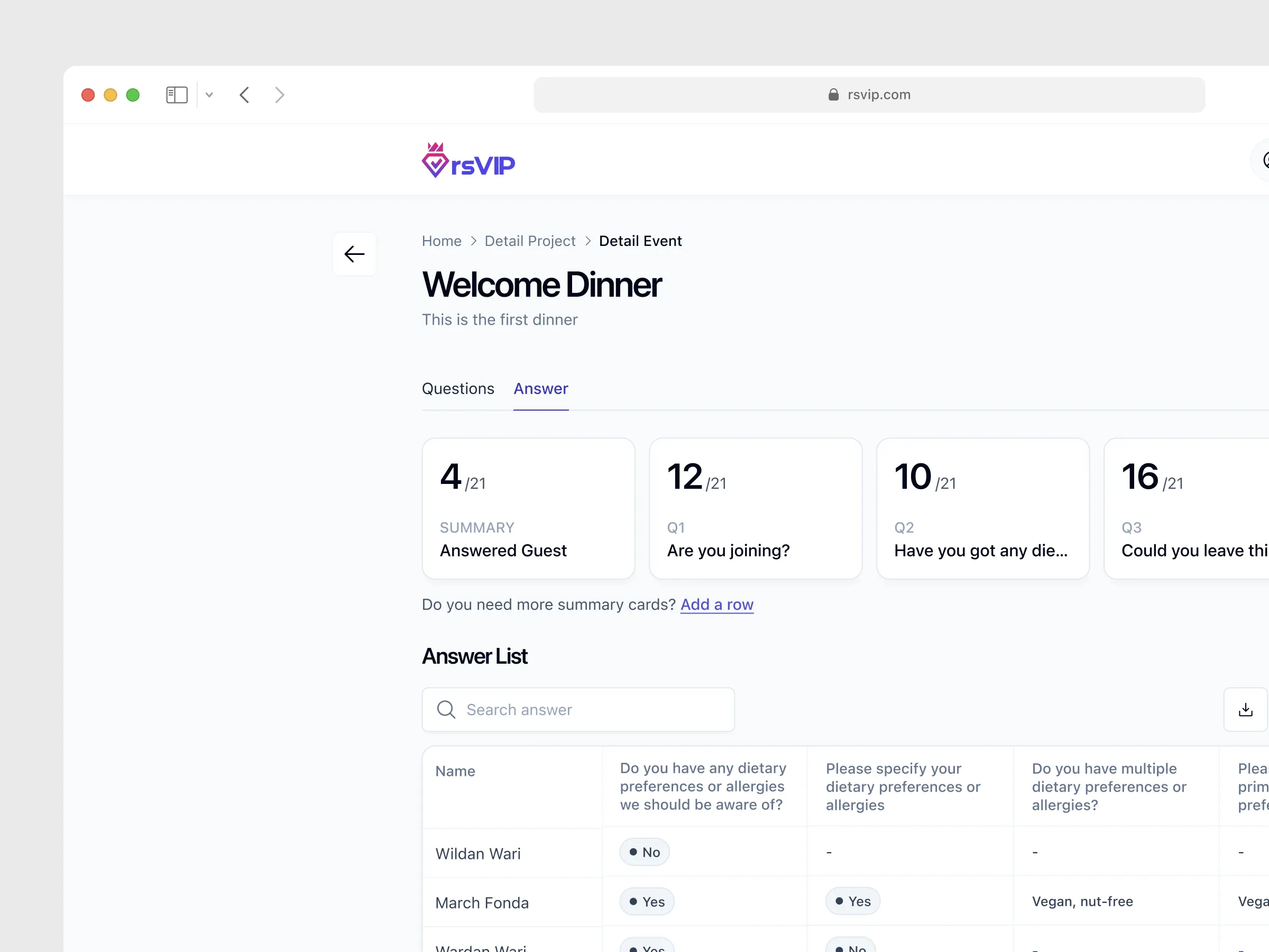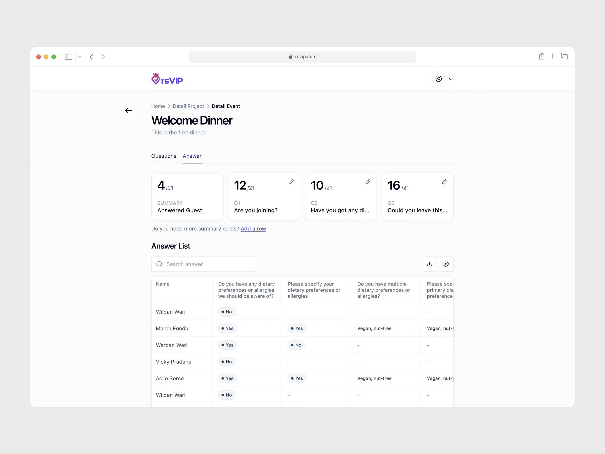 rsVIP is a platform that simplifies managing event RSVPs. With rsVIP, you can create various events, compile guest lists, send invitation messages, and conveniently receive attendance confirmations and additional information from guests.
