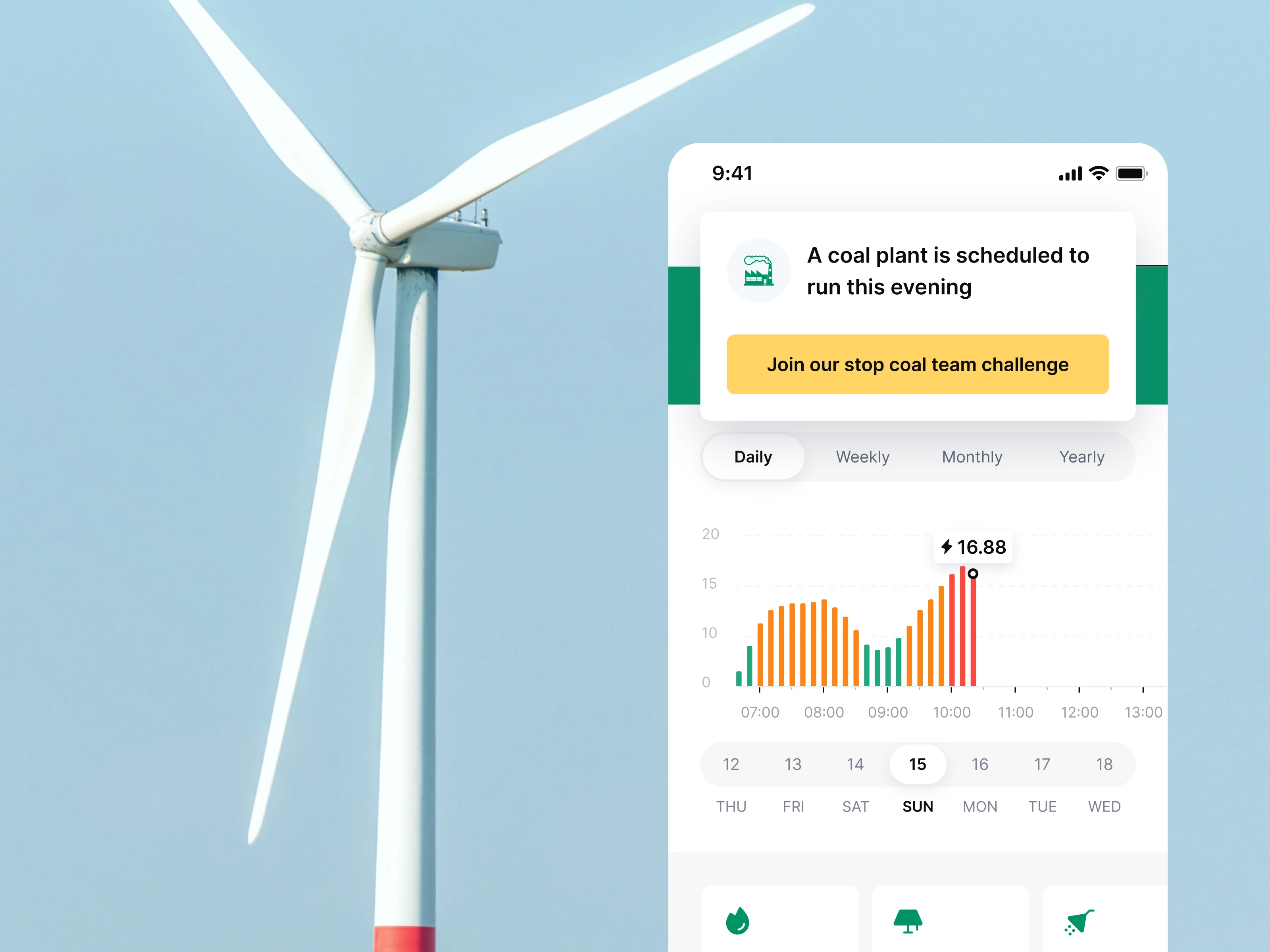 Mobile platform that helps users monitor and manage their energy use, emphasizing cost savings and sustainability through easy tracking, personalized tips, and real-time community actions.