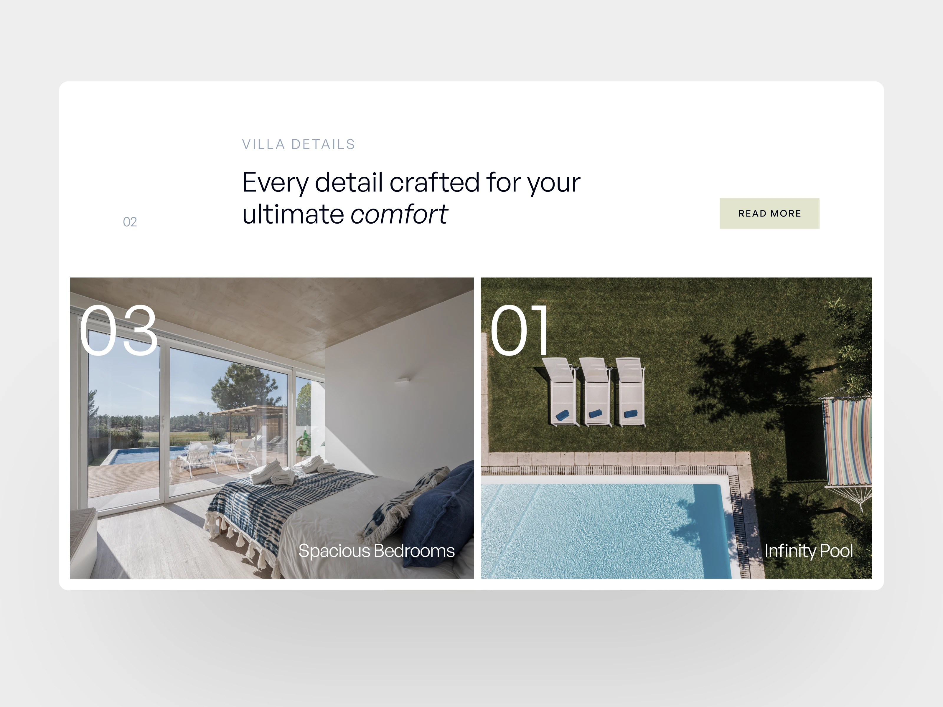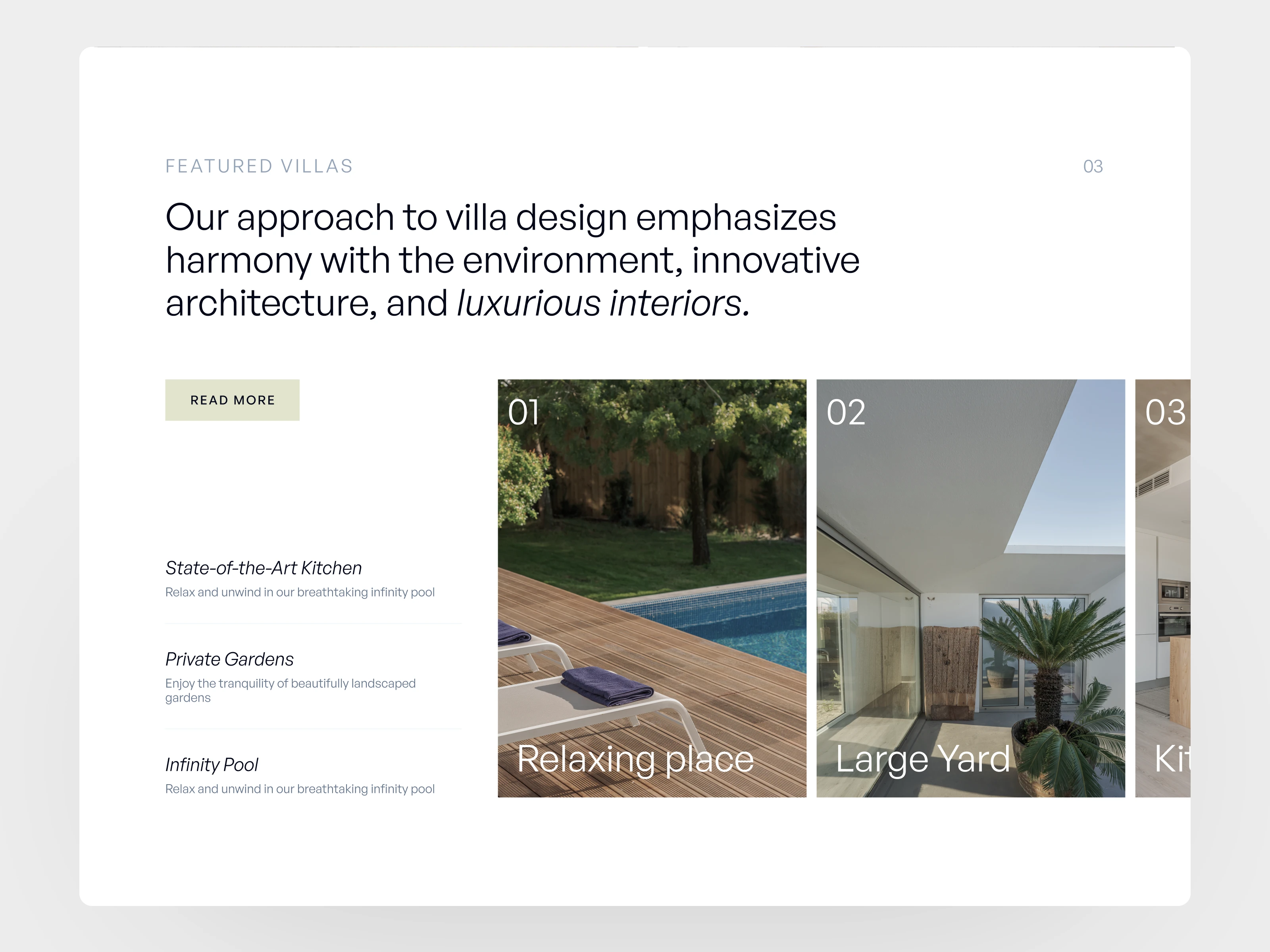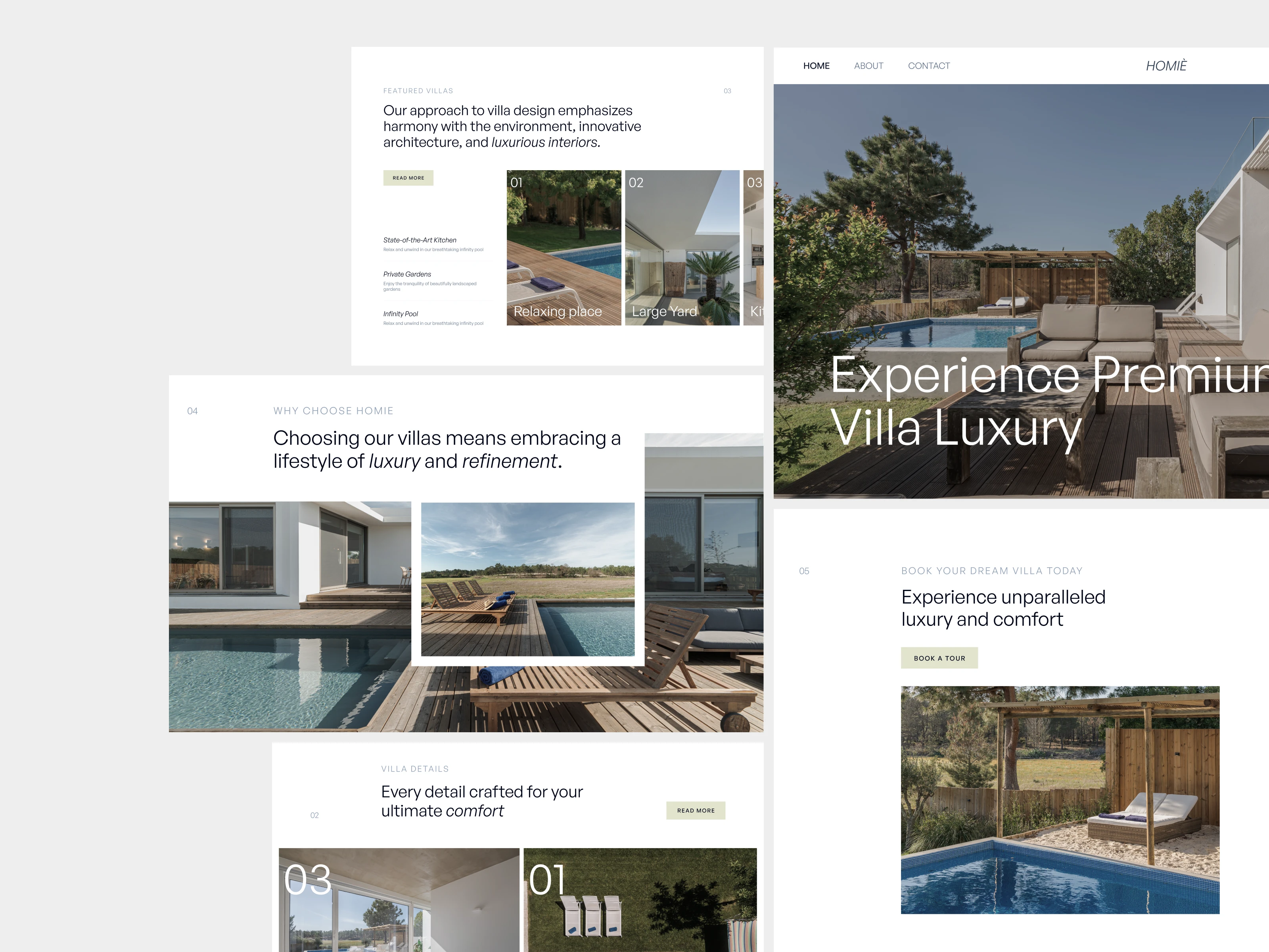 A modern landing page for a villa real estate project, designed to highlight luxury, comfort, and natural surroundings with clean layouts and elegant visuals.