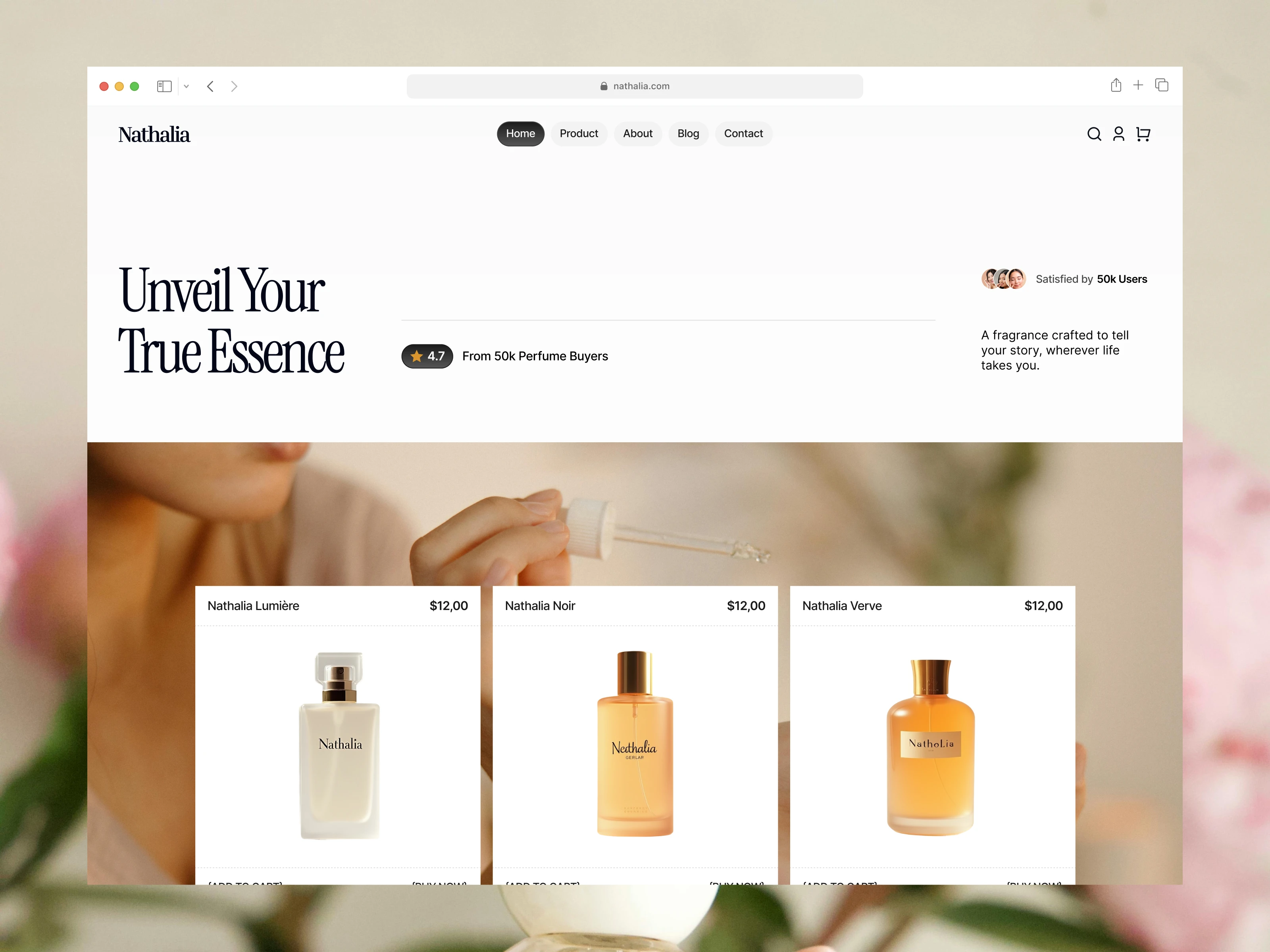 Nathalia is a landing page used to showcase high-quality perfume products. Designed for women, it also offers the advantage of being suitable for all genders.