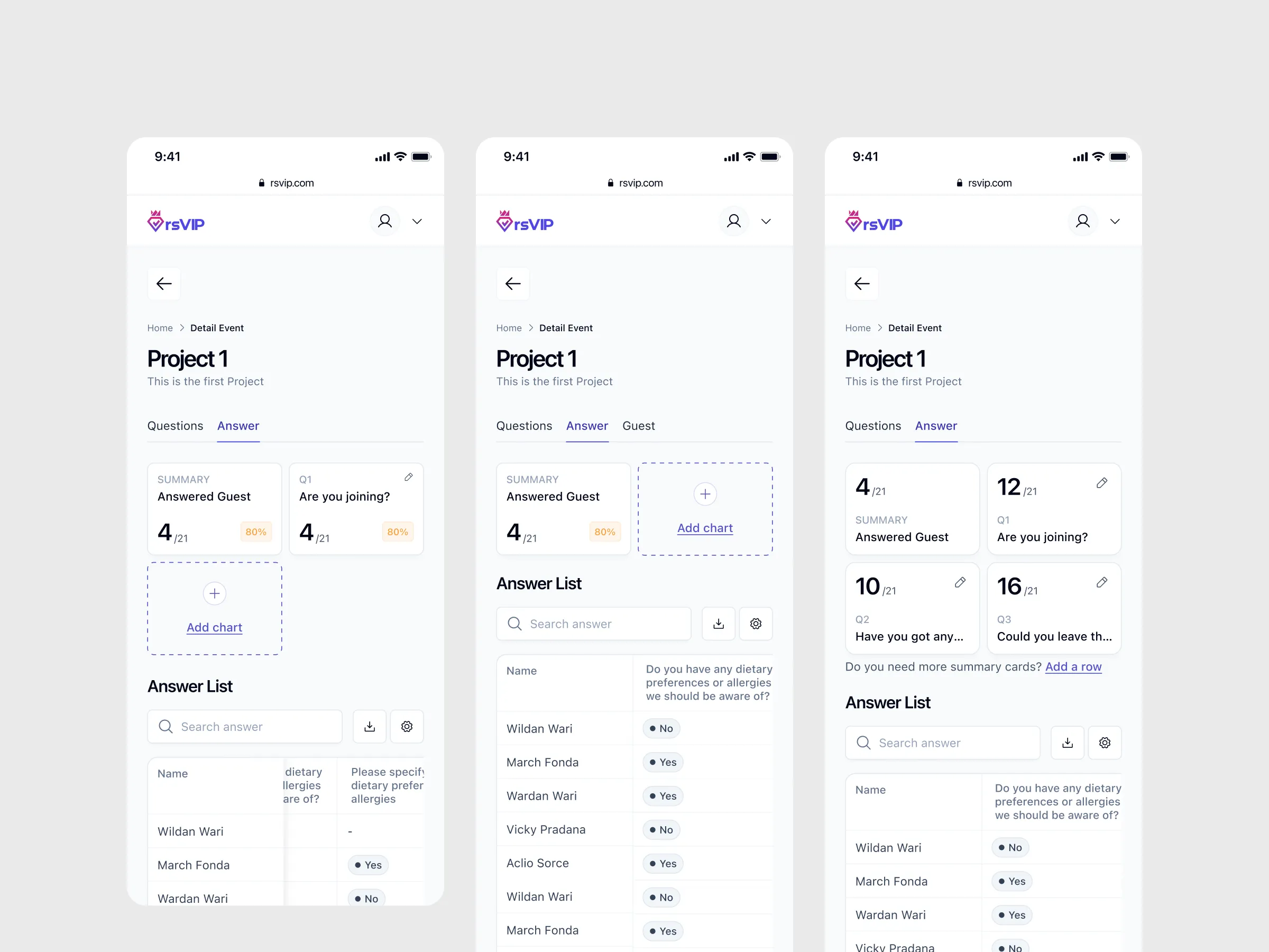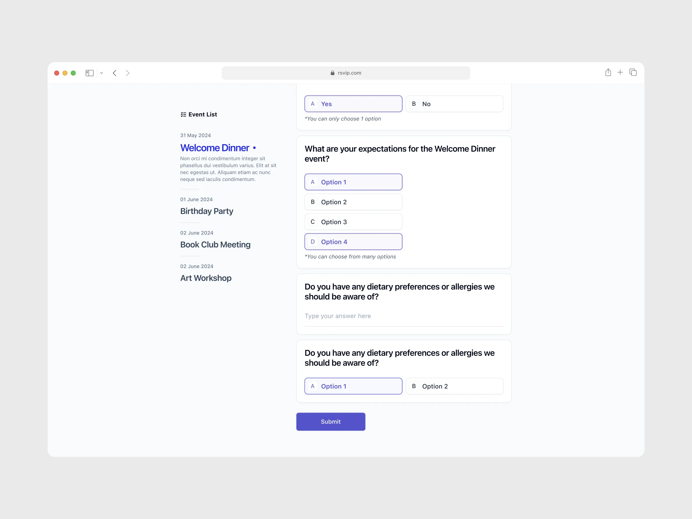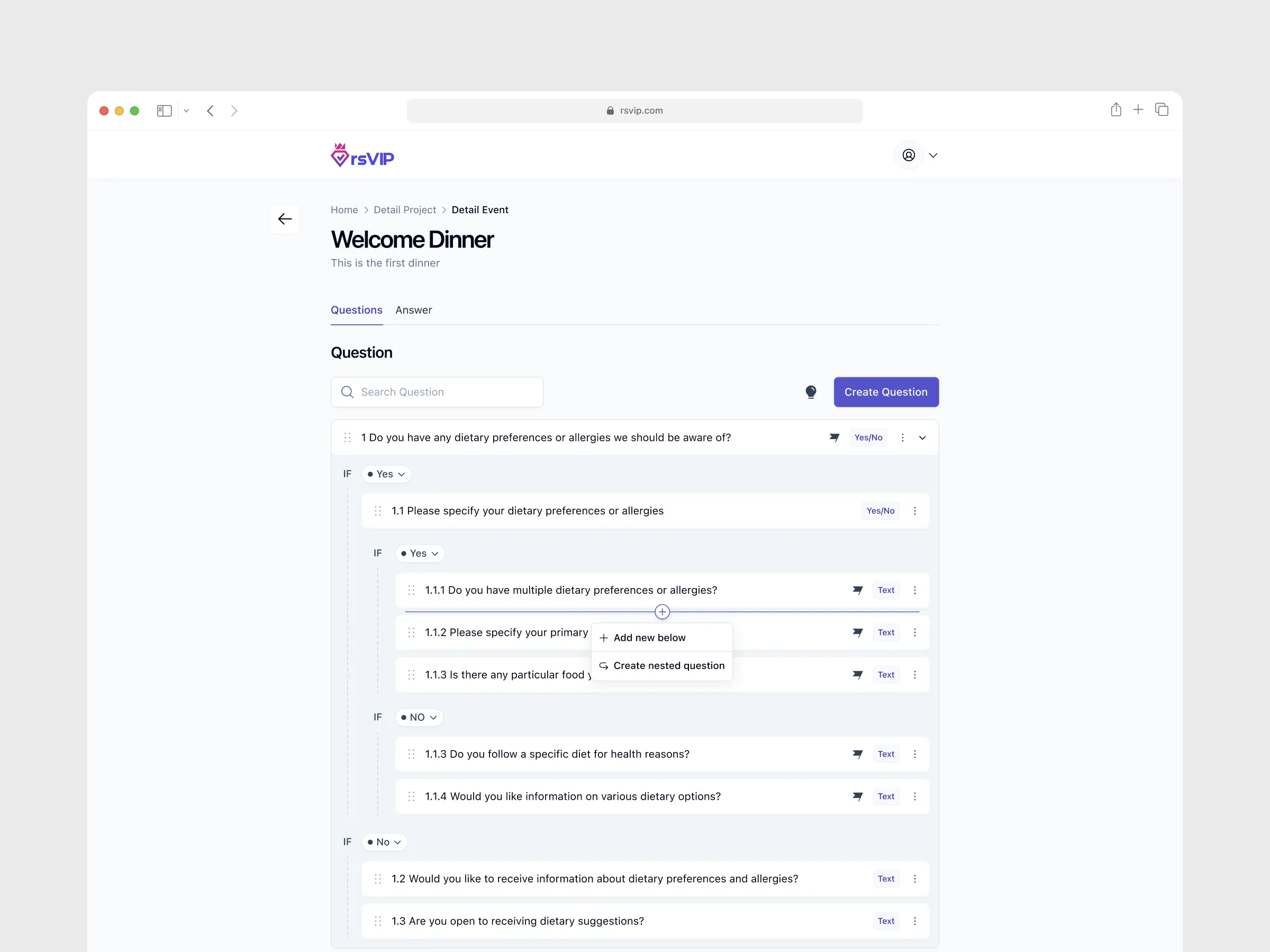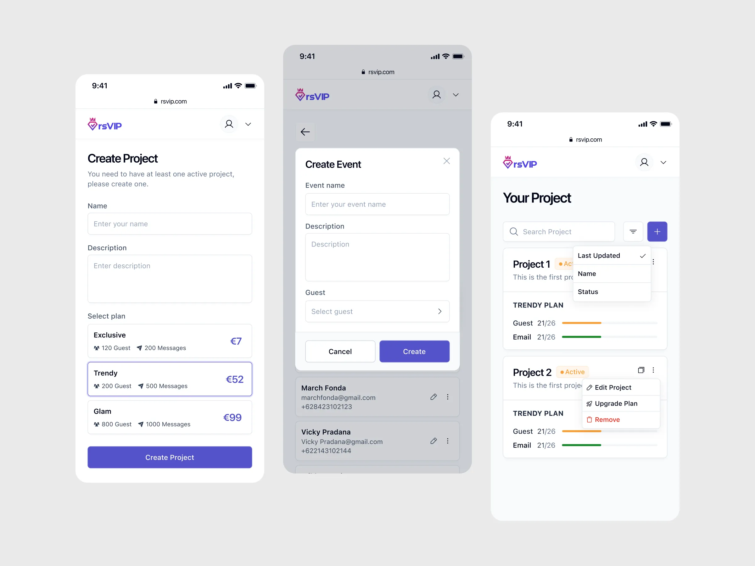 Platform that simplifies managing event RSVPs. With rsVIP, you can create various events, compile guest lists, send invitation messages, and conveniently receive attendance confirmations and additional information from guests.